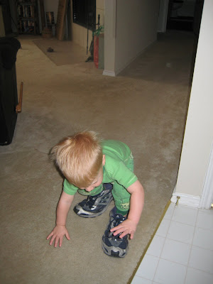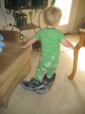 Bryson loves to walk around in our shoes.