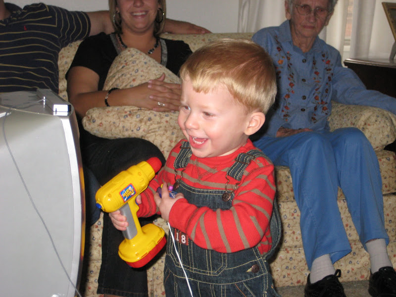 It turns out playing the bowling game is much more fun when Bryson is watching. He waits for the ball to hit the pins then laughs hysterically to entertain everyone in the room.