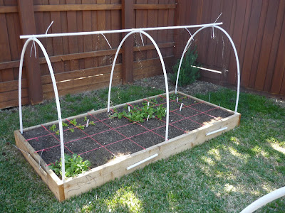- The cheesy bird net does a great job with birdies and hopefully has already snared the few wise old squirrels. I think they've been spreading the word. I tie-wrapped it to the PVC, and the bottom ends are weighed down with the PVC and lathe remains. I'll be more robust with the weights next year. The wind has moved them around.