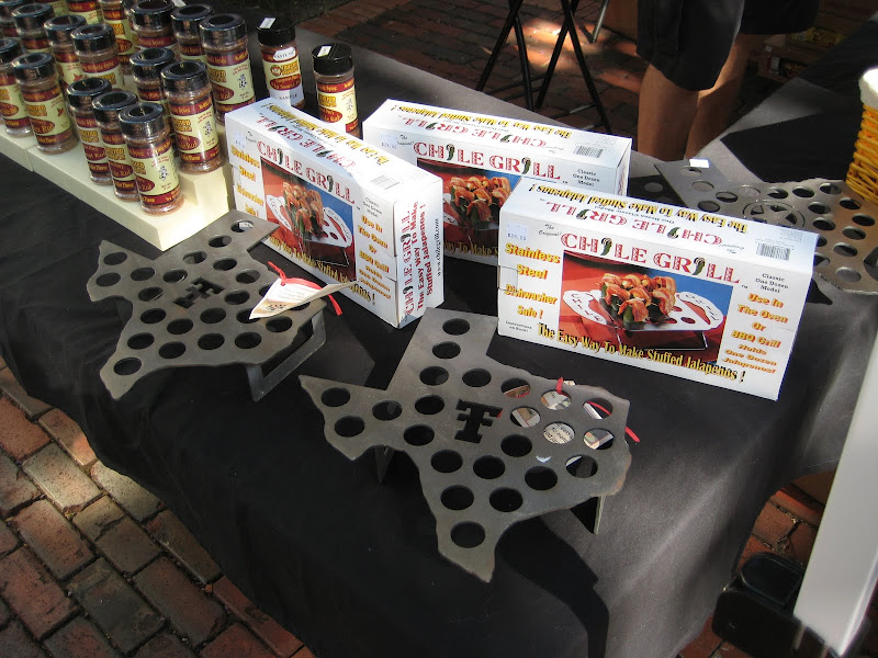 We all went to the Farmer’s Market in McKinney this morning. I picked up a watermelon, some peaches , local honey and onions. If I didn’t already have a jalapeño roasting tray, I would have been real tempted to buy this one.